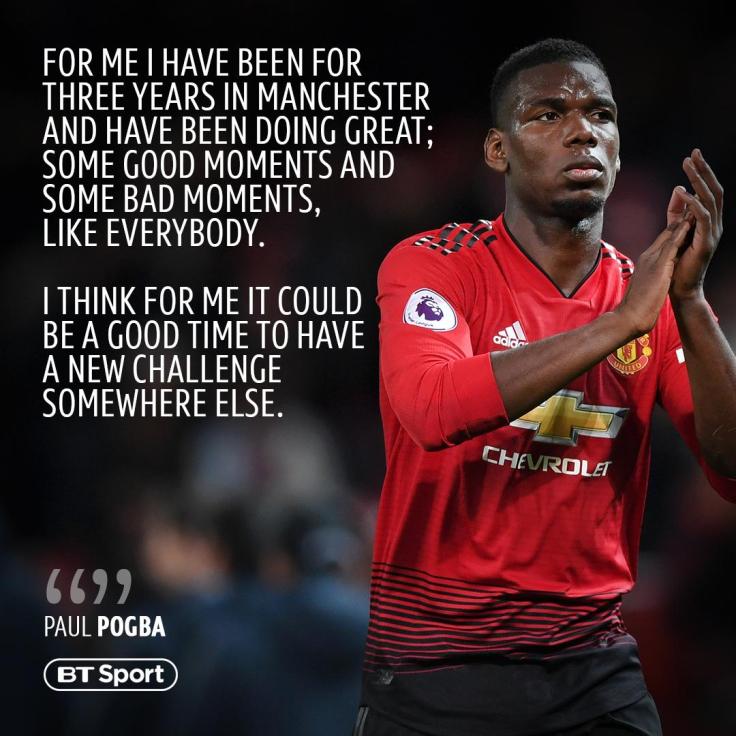 “I am thinking of this: To have a new challenge somewhere else,” Pogba said.